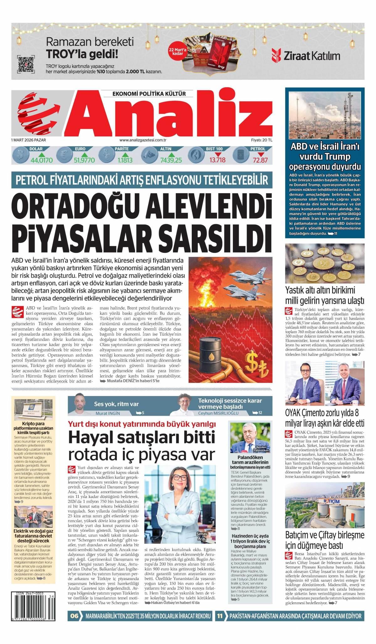 Harbi Gazete Gazetesi 1 Mart 2026, Pazar Günü Manşeti